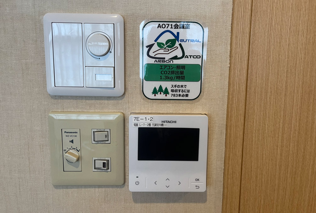 At the Fuji Area office building, we have implemented measures to make it possible to see conference rooms’ CO2 emissions at a glance, thereby promoting activities to enhance energy conservation awareness.
