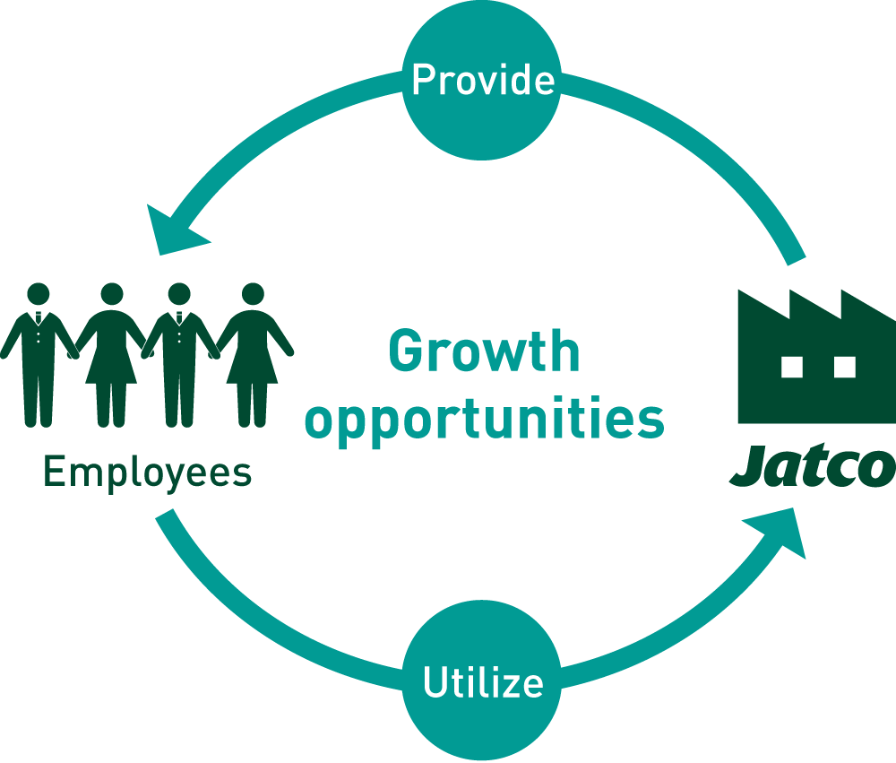 Through these growth opportunities, employees proactively work on their own growth and aim to achieve sustainable growth together with JATCO. By maximizing the potential of each and every employee, JATCO connects human capital to corporate competitiveness and aims to create sustainable corporate value.
