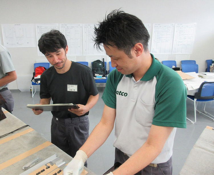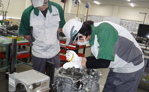 In an ever-changing environment, we must continually enhance techniques and skills at our manufacturing sites for JATCO to reliably deliver competitive, top-quality products to customers worldwide. JATCO provides systematic education from the time new employees join the company until they become managers and supervisors, ensuring manufacturing personnel can continually enhance the techniques and skills that are the foundation of monozukuri (manufacturing).