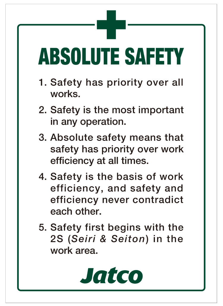 At JATCO, we have established the following three pillars regarding safety activities.