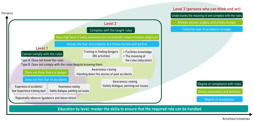 Regarding the basic axis, Safety CAPDo, we have given the first priority to raising danger sensitivity without making any changes (Level 1) and have stipulated Level 2 as increasing the propensity to take risks and additionally to abide by company rules.