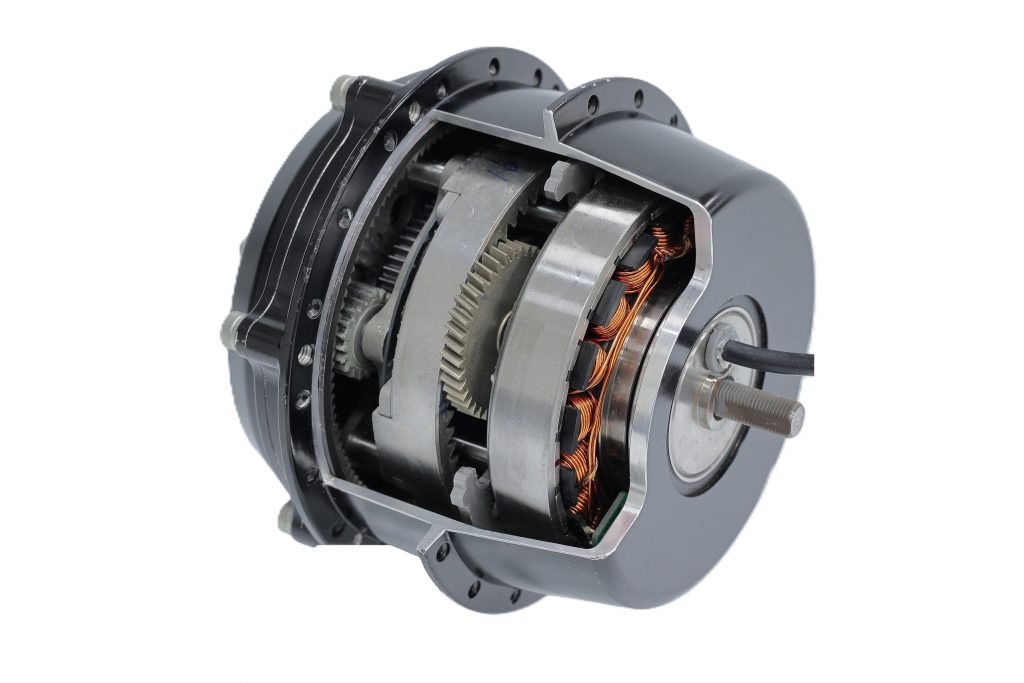 内装3段変速と250Wアシストモーターの2つの機能を一体化した2‑in‑1構成の後輪駆動方式ドライブユニットで、部品点数を抑えたコンパクトな構造を実現しています。