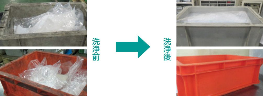 また、従来、商品の移動・保管に使用している樹脂製容器や商品保護のために使っている樹脂製緩衝材類は、劣化や商品の変化により使えなくなった場合、産業廃棄物として処分してきましたが、2004年以降、ほかの商品への再利用を開始。また、樹脂製品製作会社にも協力いただき、原料としてリサイクルするなど、廃棄量の削減を進めています。